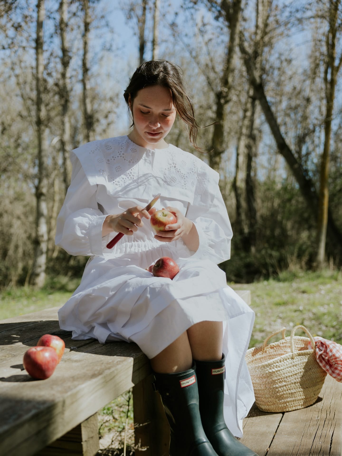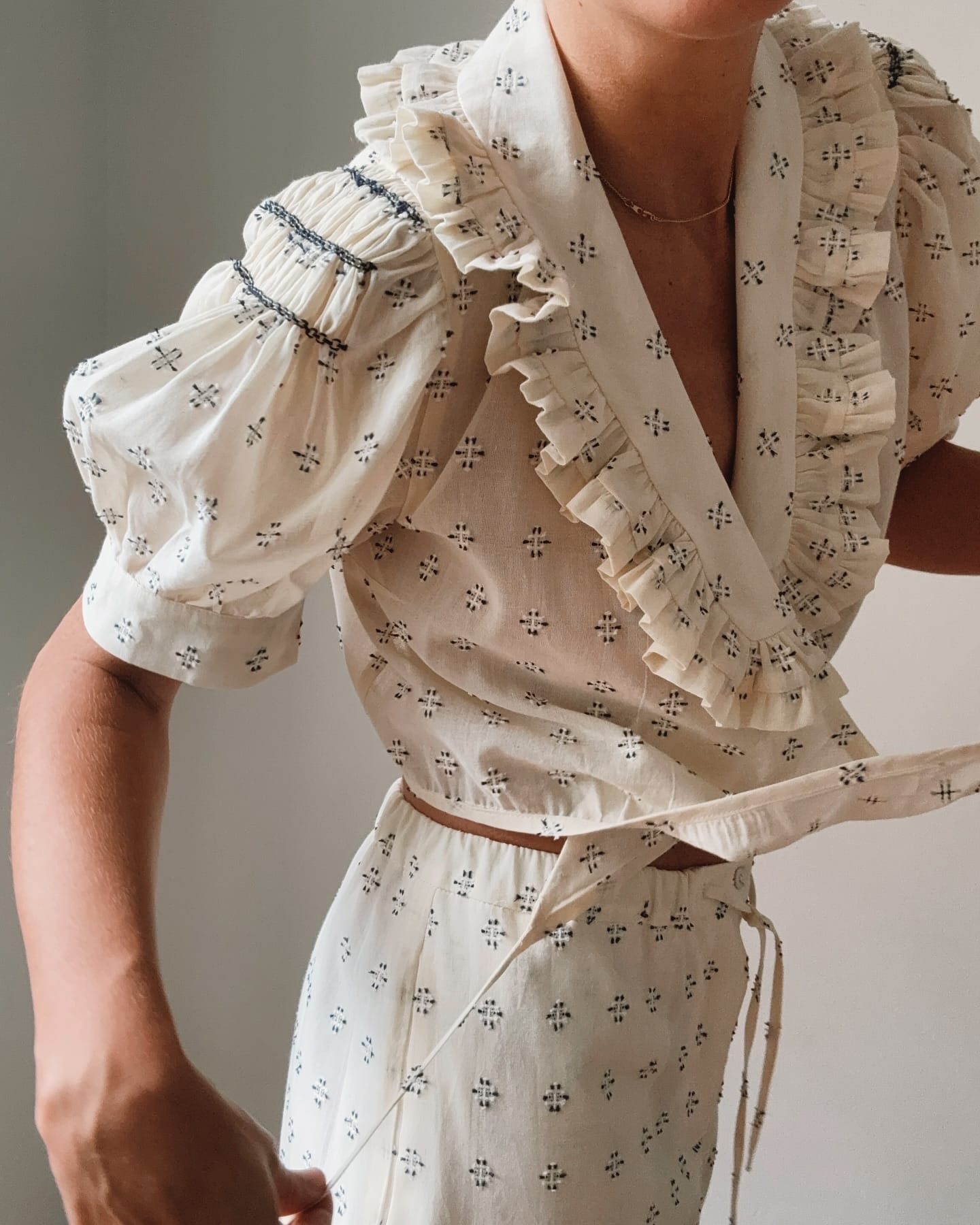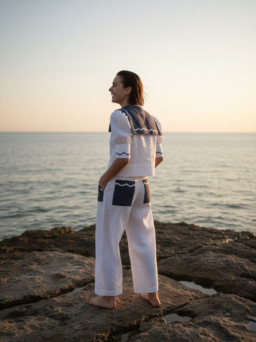 È lì che i vestiti di Andión prendono vita. Non su una catena di produzione, ma su un tavolo che conosce il ritmo delle giornate. Le mani tagliano, cuciono, provano, sbagliano, riprovano. Ogni capo nasce lentamente, quasi con una sua volontà. Non esiste un pezzo uguale all’altro, perché non esiste mai lo stesso momento due volte.