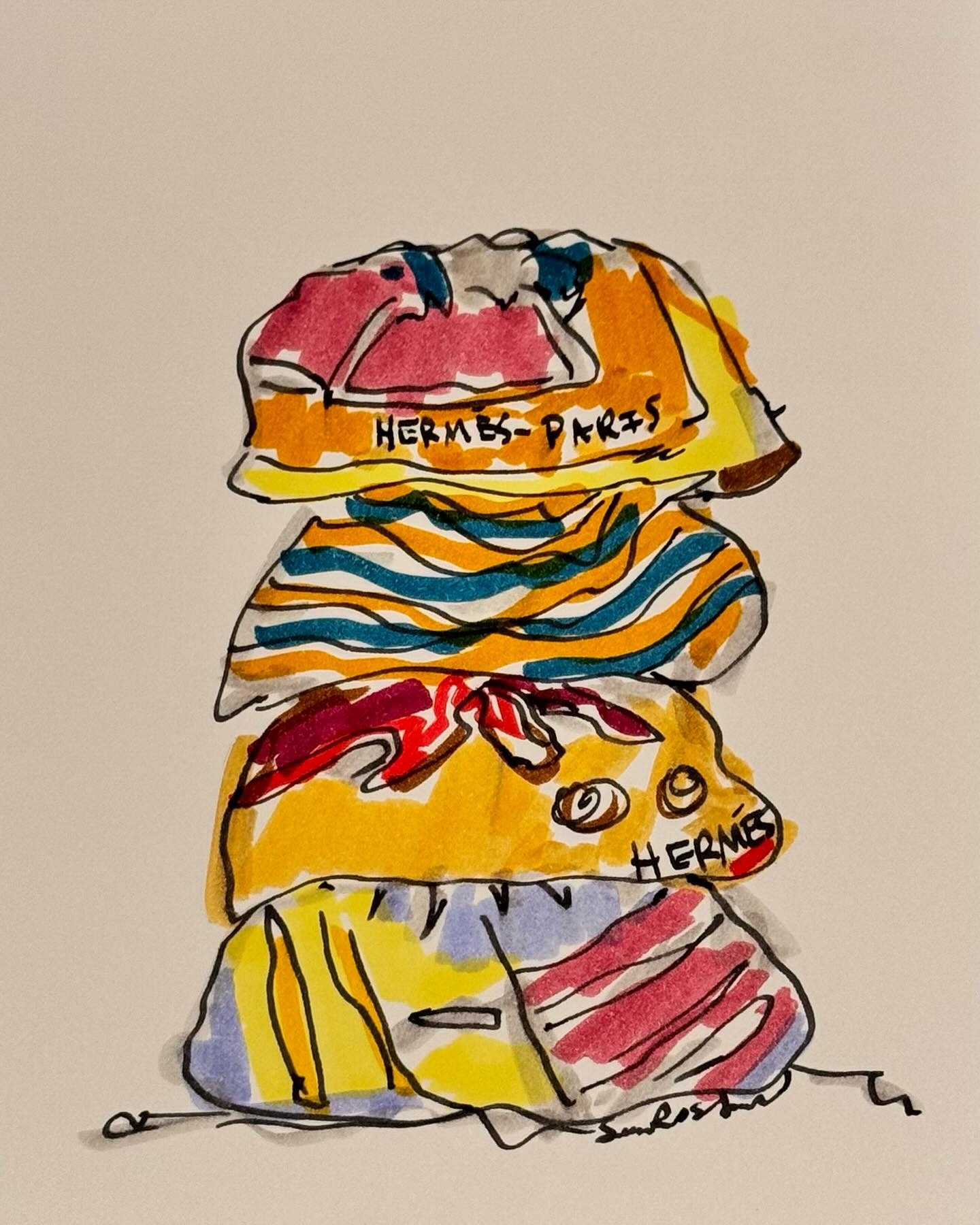 Lily, londinese di nascita e anima creativa formata alla Parsons School of Design, ha trasformato un momento sospeso in un gesto elegante e inatteso, recuperare i vintage asciugamani Hermès di famiglia e dar loro una nuova vita sotto forma di mascherine, raccogliendo fondi per FoodBank NYC. Un’idea semplice, affettuosa, con quella leggerezza tipica di chi sa vedere possibilità dove altri vedono solo limiti.
