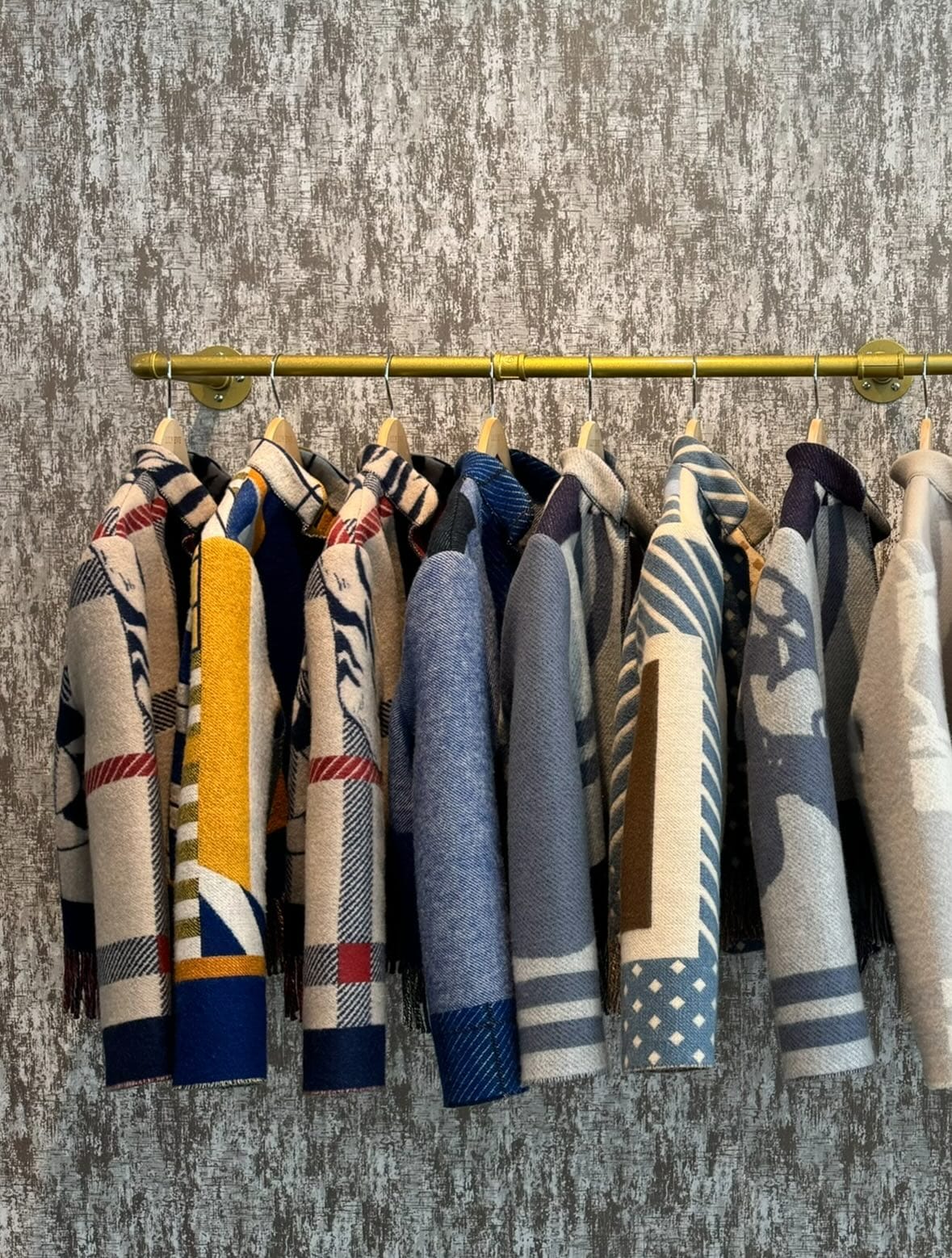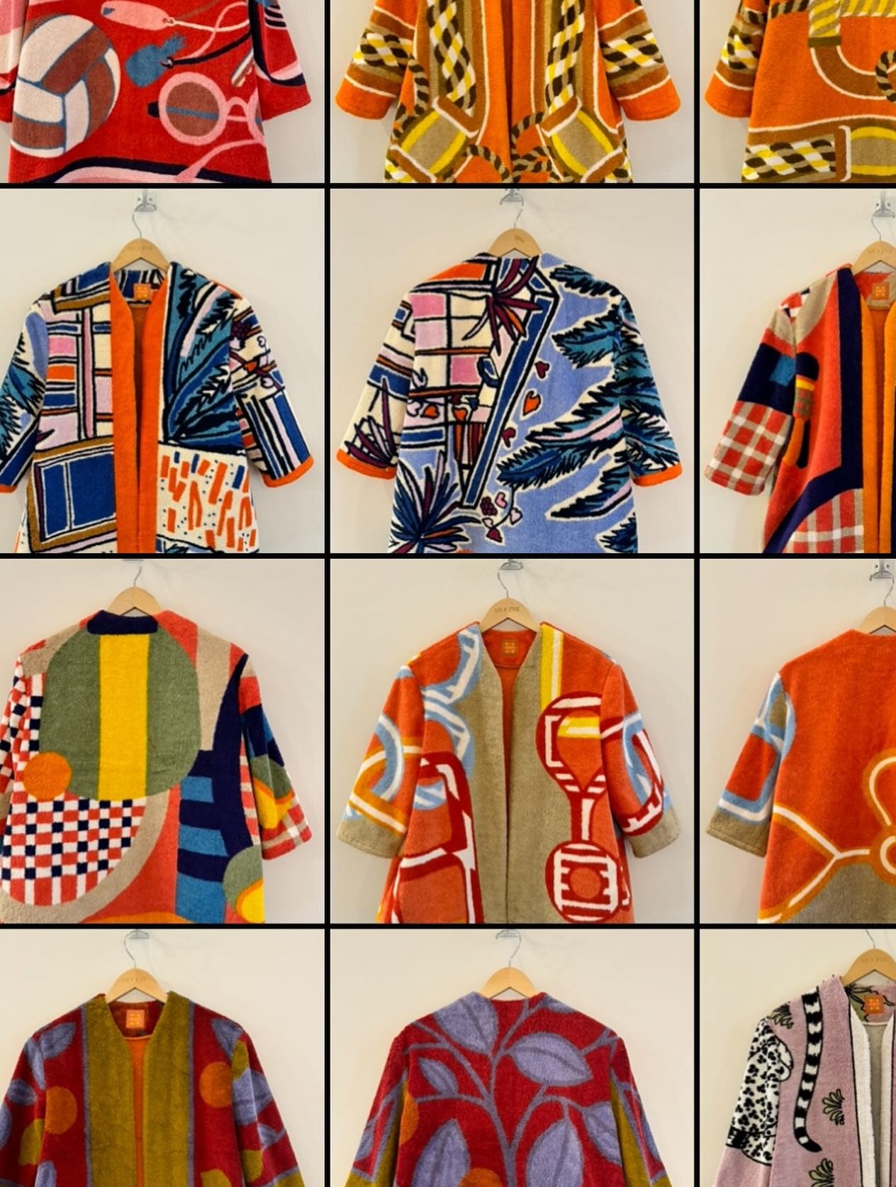 Il primo colpo di fulmine si chiama Terry Jacket. Un capo che nasce da un asciugamano e diventa icona. Da lì prende vita la Terry Towel Series e, con naturalezza, un intero universo fatto di pezzi unici: coperte trasformate in giacche, sete che raccontano nuove storie, materiali recuperati e ripensati centimetro dopo centimetro. Nulla è casuale, tutto è destinato a durare. È lusso, sì, ma con una coscienza ben sveglia.