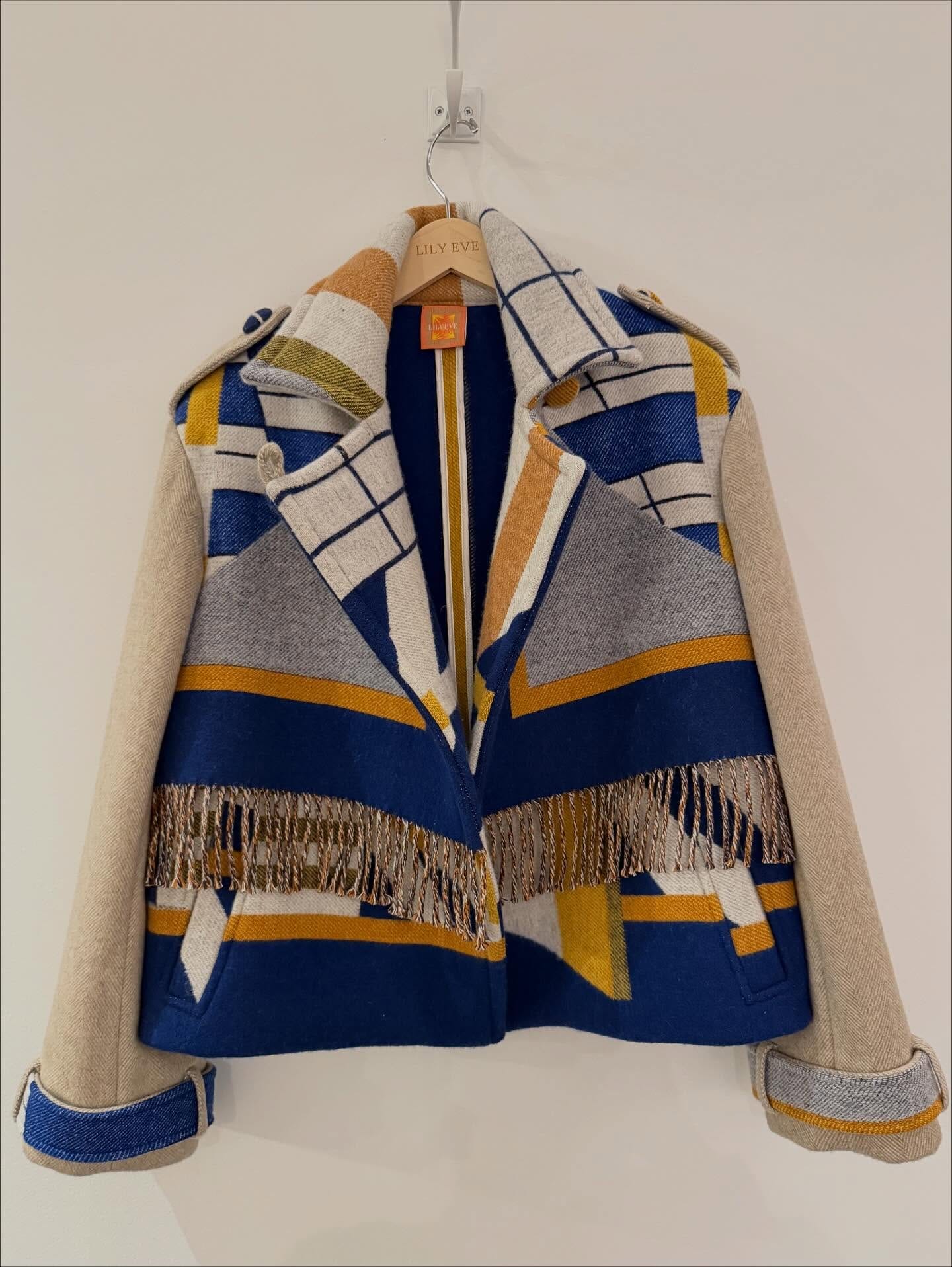 Come la Windowpane Jacket, per esempio. Una Blanket Jacket che si indossa con disinvoltura sopra una t-shirt, jeans a zampa e stivaletti. Audace senza sforzo, elegante senza rigidità. Proprio come la filosofia del brand.