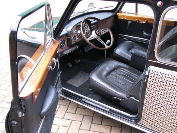 Il risultato? Una Morris Mini Cooper 1963 che costa quattro volte il prezzo del modello standard e che sembra uscita da un salotto più che da una fabbrica. Interni completamente rivisitati, pelle ovunque, plancia in radica di noce, tappeti Wilton, alzacristalli elettrici e persino un tettuccio scorrevole in vinile. Una Mini, sì, ma con l’anima di una grande berlina di lusso.