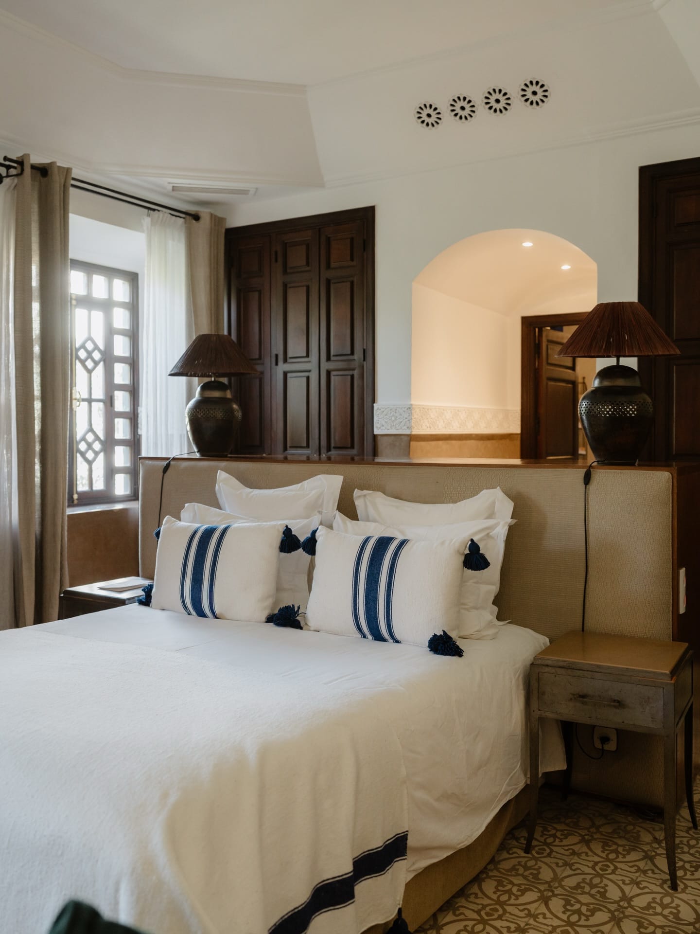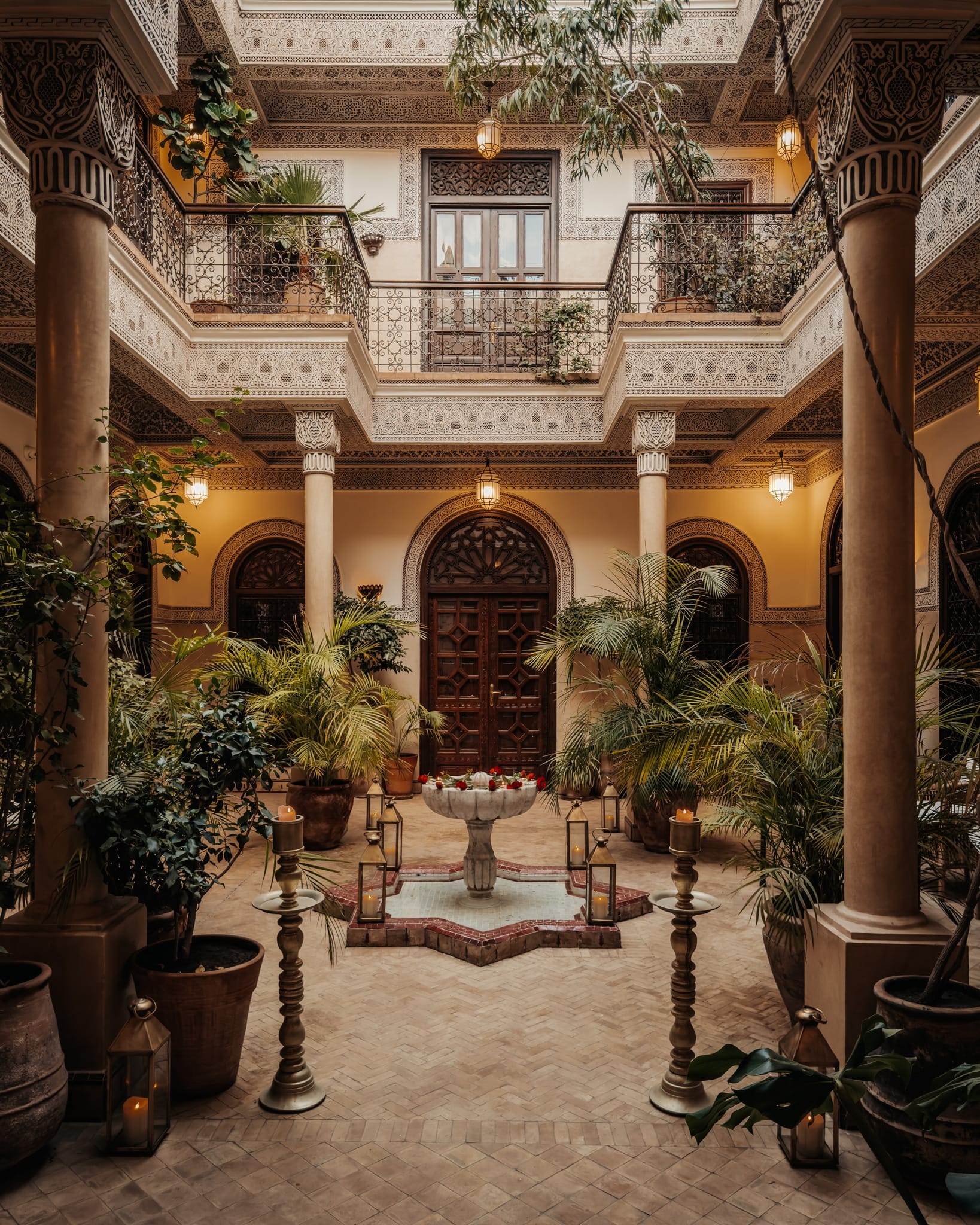 Siamo nel cuore pulsante della città, ai piedi della Moschea della Koutoubia, tra il Palazzo Reale e l’energia vibrante di Jemaa El Fna. Eppure, appena varcata la soglia di questo hotel 5 stelle, tutto cambia. Il rumore resta fuori, mentre dentro regnano silenzio, armonia e un’eleganza discreta fatta di colori cangianti, tessuti raffinati e legni scolpiti che raccontano storie antiche.